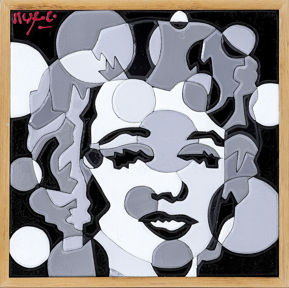 acrilici su legno cm 20x20, firma in alto a sinistra, titolo, firma, timbro ed etichetta dell'artista con archivio al retro, dichiarazione d'autenticità, archivio ed etichette dell'artista su foto.