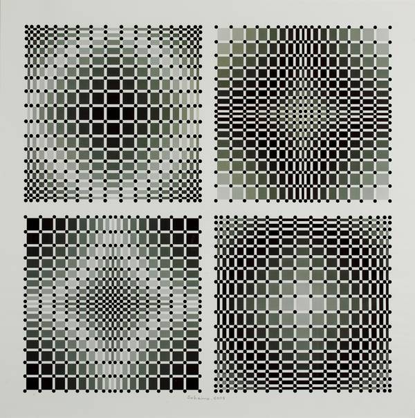 Francisco Sobrino Senza titolo - 2005 digital su carta cm. 72x72 Opera pubblicata nel catalogo della mostra “Horacio Garcia Rossi - Francisco Sobrino”, Palazzo Frisacco, Tolmezzo (UD); poi in “Ben Ormenese - Francisco Sobrino”, a cura di Giovanni Granzotto e G.Barbero, Ed. Verso l’Arte Firma in basso al centro