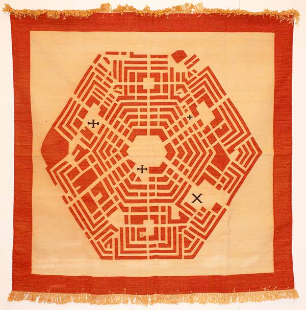Massimo Uberti Città ideale 1/5 - 2004 tappeto kilim in lana cm. 160x150 Autentica a cura dell’artista