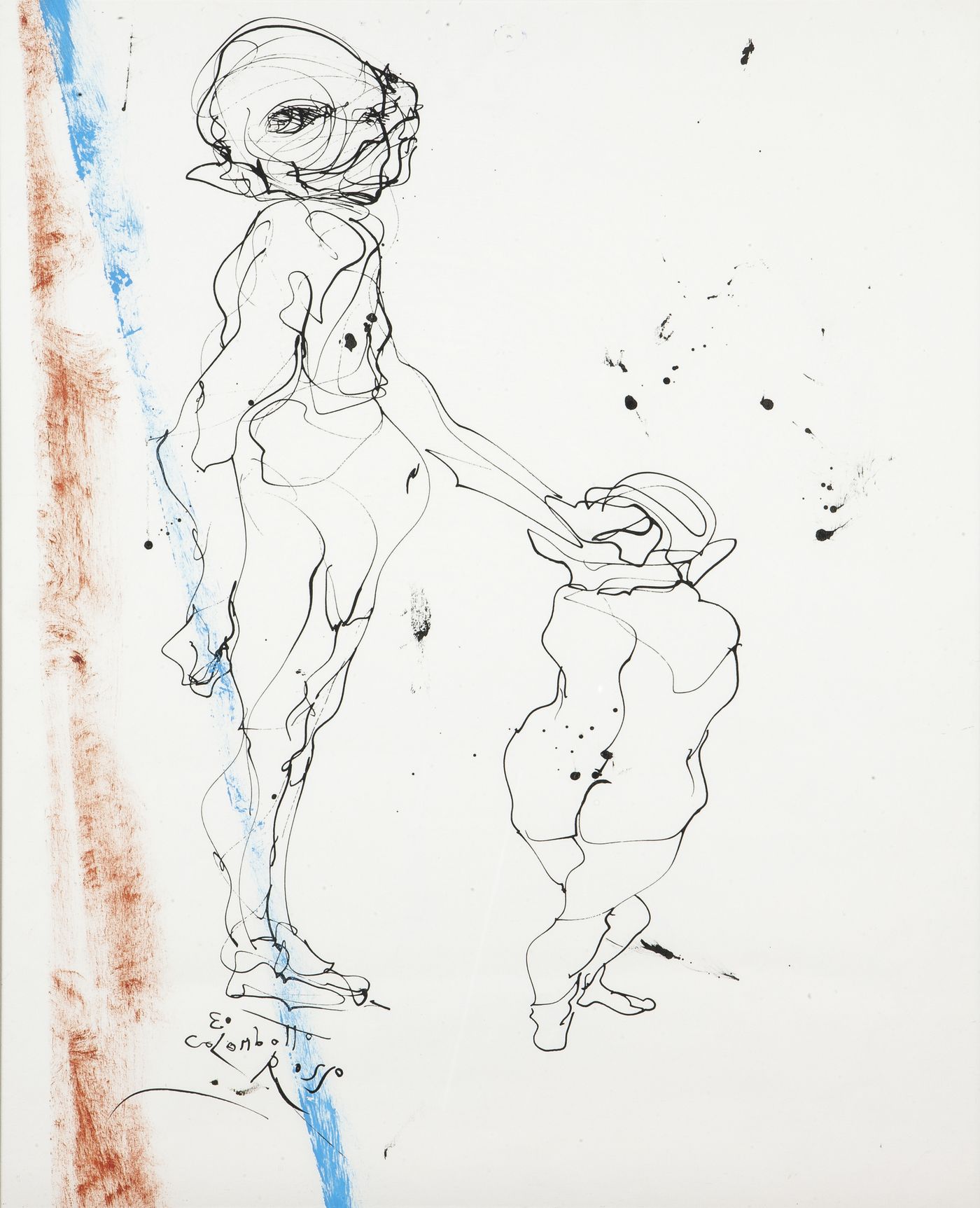 COLOMBOTTO ROSSO ENRICO (Torino 1925) - "Figura", 55x45 china acquerellata su carta. Opera firmata in basso a sinistra