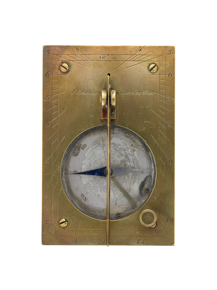JSCHABLAFS & SOHNIN - WIEN Orologio solare in ottone e legno graduato per...
