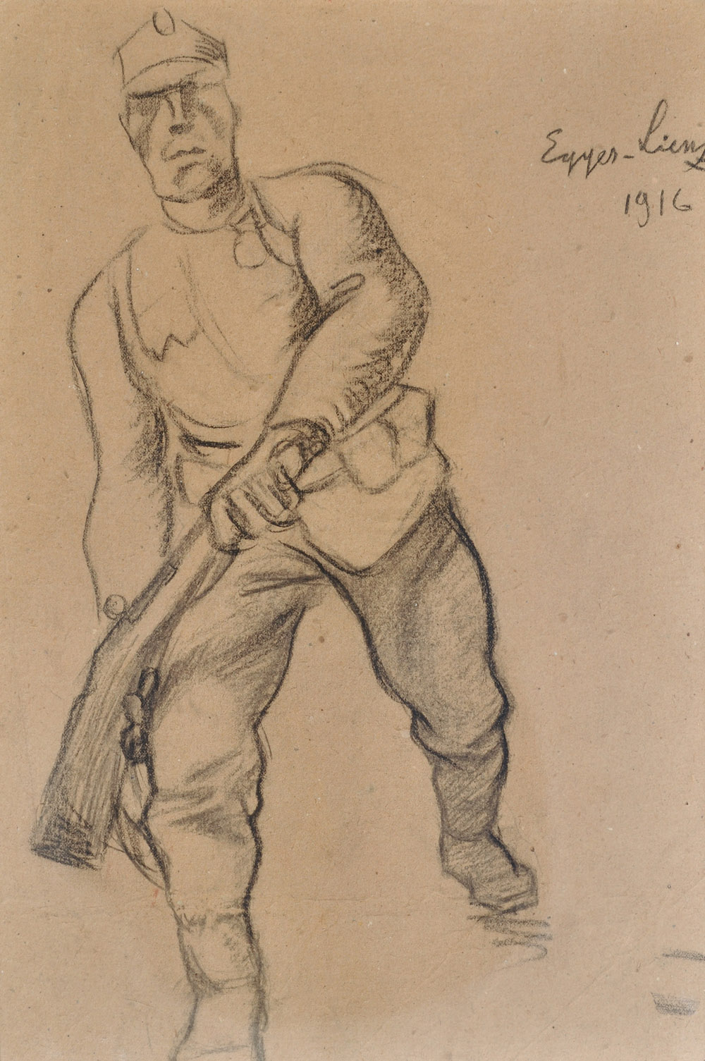 Lotto 27 | ALBIN EGGER-LIENZ Soldato austriaco con fucile in marcia in avanti 1916...