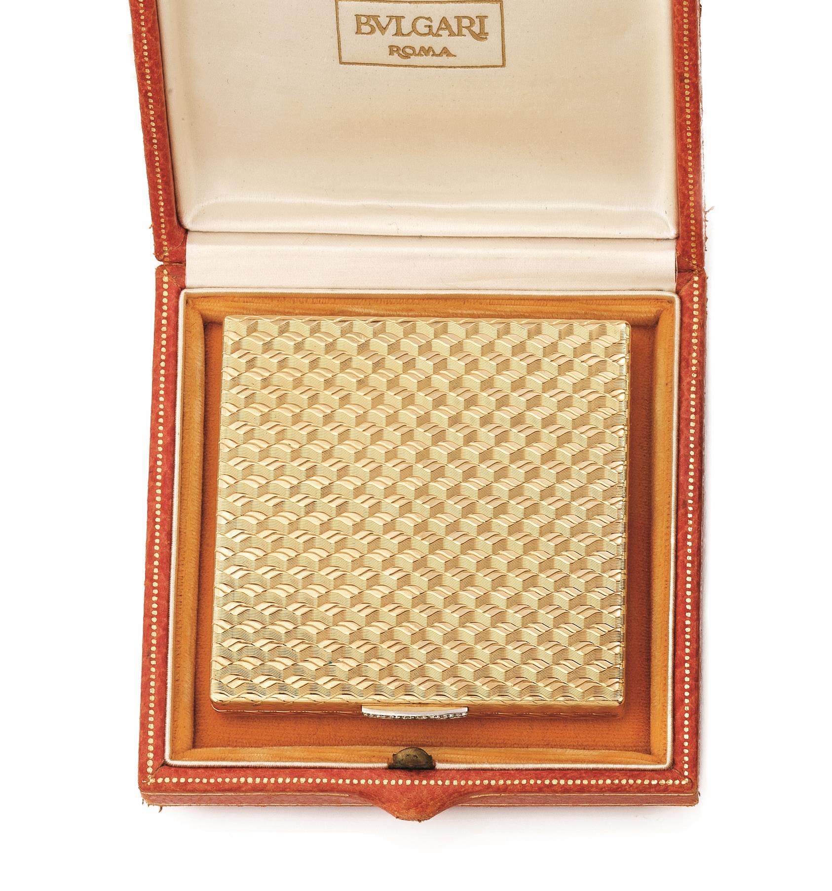 SCATOLA PORTACIPRIA, BULGARI, IN ORO GIALLO E DIAMANTIdi forma quadrata in...