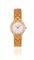 Cassa in due corpi con fondello a scatto, lunetta e anse decorata da una linea di brillanti. Quadrante in madreperla con indici in brillanti, lancette a Dauphine. Movimento al quarzo ETA 256 031. Bracciale integrato alla cassa a maglie esagonali bombate, cassa, quadrante e movimento firmati