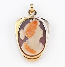 PENDENTE, BULGARI, IN ORO BIANCO, ORO ROSA, ORO GIALLO E CAMMEOcornice...