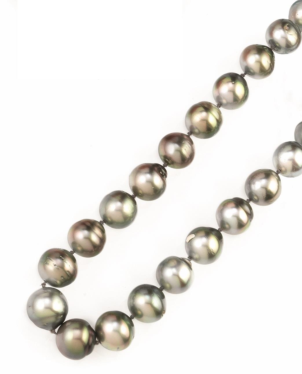 realizzata ad un filo di perle Tahiti con diametro da 9 a 12 mm, fermatura a sfera in oro bianco punteggiata da brillanti, 59 g