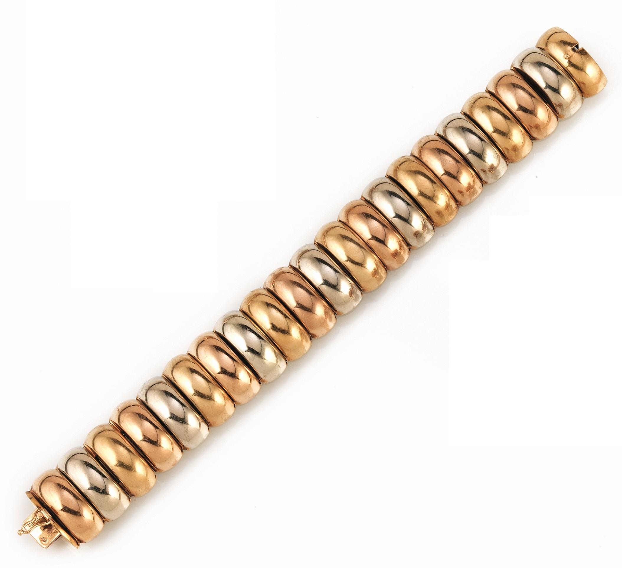 BRACCIALE, ANNI '40, IN ORO GIALLO, ORO BIANCO E ORO ROSA