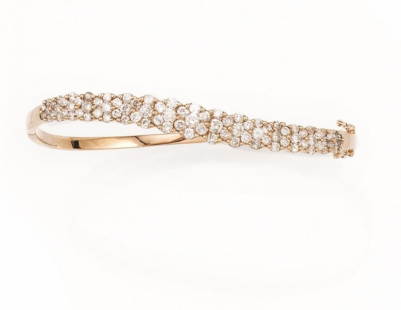 BRACCIALE IN ORO ROSA E DIAMANTIa cerchio rigido ondulato, parte centrale...