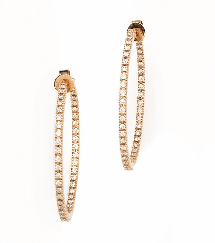 ciascuno disegnato come un cerchio, con parte anteriore e interna decorata in brillanti, punzone 750, 12 g