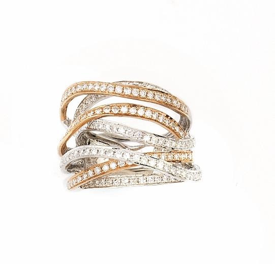 ANELLO IN ORO BIANCO, ORO ROSA E DIAMANTIrealizzato a linee ondulate e...