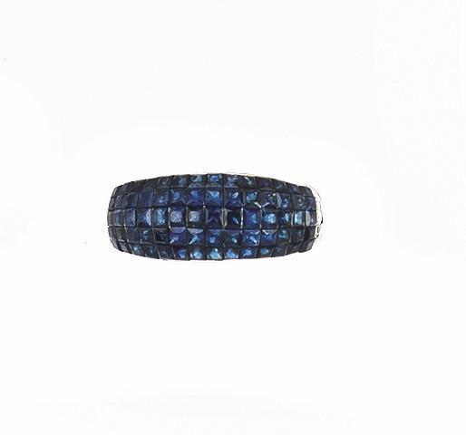Lotto 97 | ANELLO IN ORO BIANCO, ZAFFIRI E DIAMANTIrealizzato a fascia bombata con...