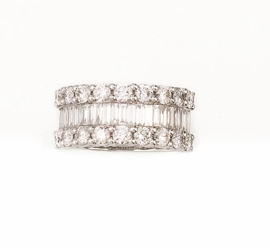 ANELLO IN ORO BIANCO E DIAMANTIrealizzato ad una fila di baguette entro due...