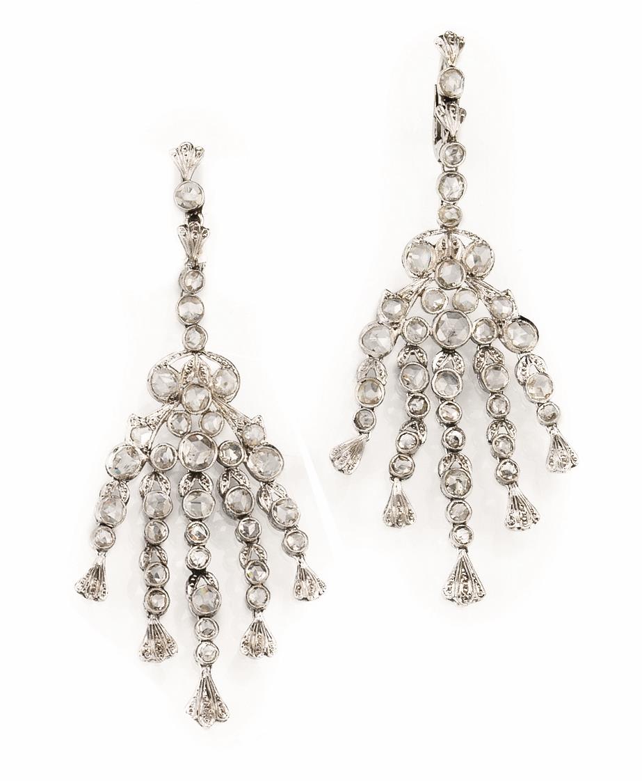 ciascuno a con piccoli elementi a ventaglio e frangia interamente decorata da rose di diamante, 14 g