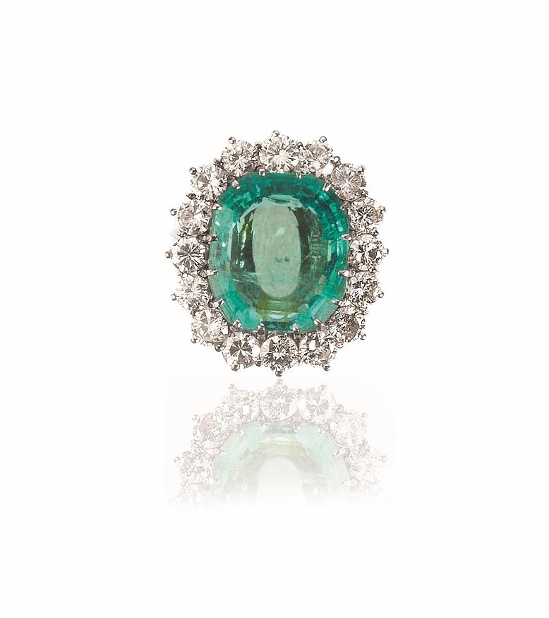 ANELLO IN ORO BIANCO, SMERALDO E DIAMANTI