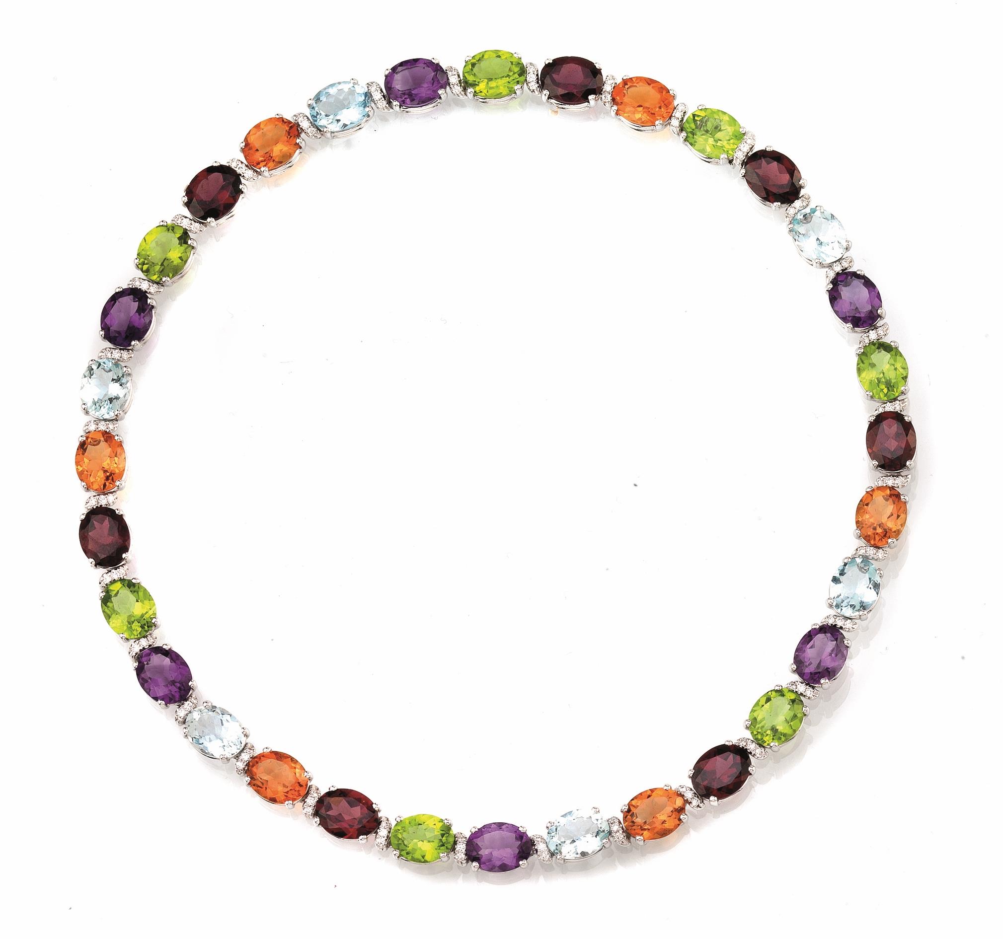 COLLANA IN ORO BIANCO, PIETRE DI COLORE E DIAMANTI
