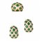 ciascun orecchino realizzato a semiovale bombato con montatura traforata a losanghe decorata in brillanti e smeraldi, 23 g; l'anello en suite con gli orecchini, 12 g