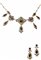 la collana realizzata a volute interamente decorate da smalti policromi e granati con pendenti analogamente decorati; ciascun orecchino pendente en suite con la collana; entro astuccio originale