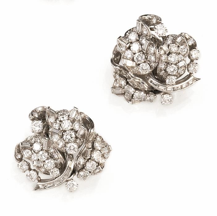 ciascuno disegnato come un mazzo di fiori stilizzato in brillanti e baguette, 19 g