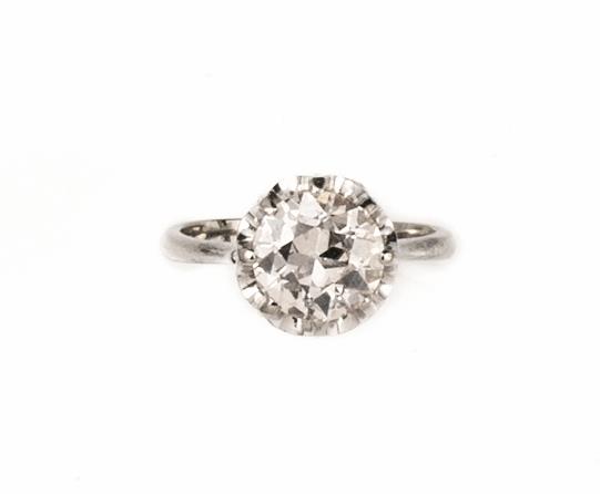 al centro di una montatura ondulata a corolla un brillante di 2.60 ct circa, punzone 750, 4 g