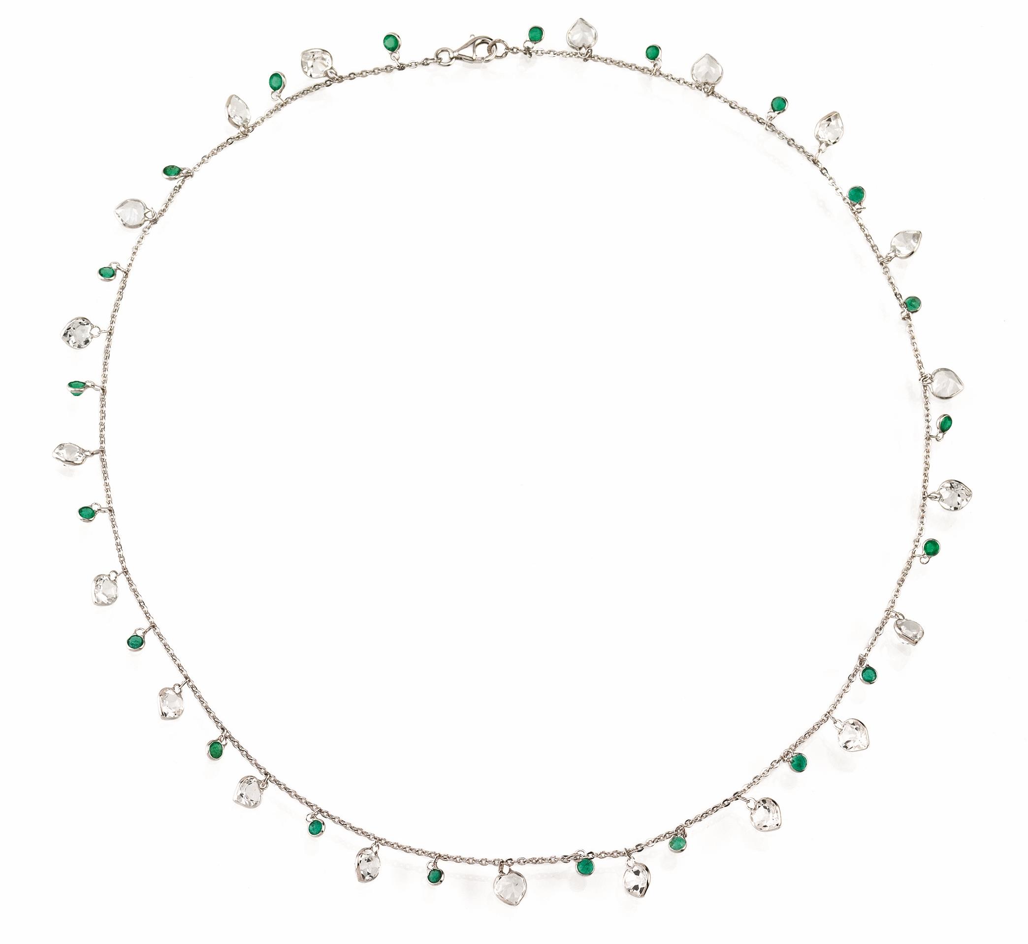COLLANA IN ORO BIANCO, TOPAZI INCOLORI E SMERALDIrealizzata con catenina...
