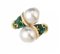 con montatura contrarié con finali in perle diam. 12.5 mm, gambo parzialmente decorato in smeraldi e anelli in brillanti, 13 g