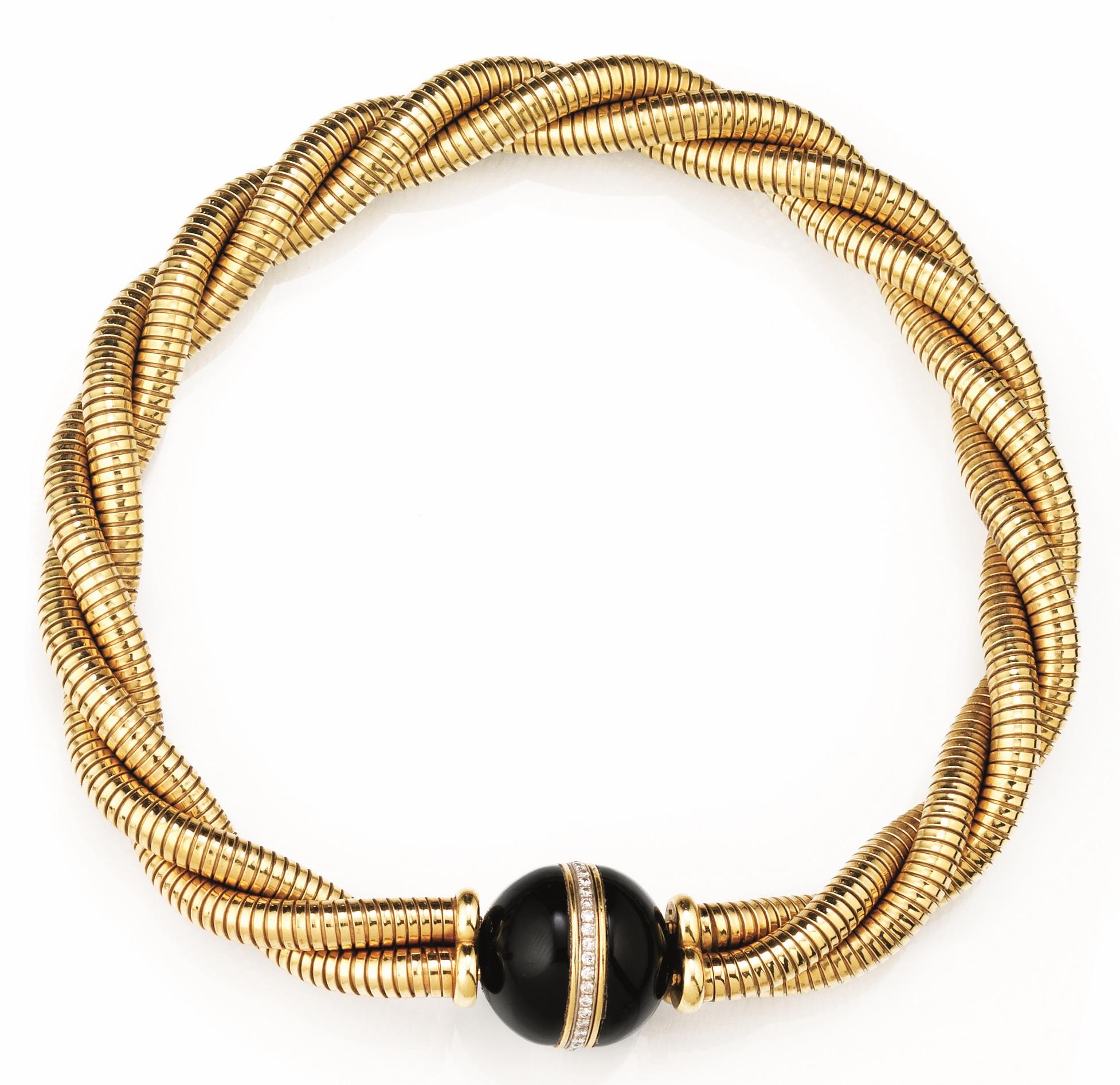 COLLANA IN ORO GIALLO, ONICE E DIAMANTI
