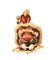 SPILLA, FRASCAROLO, IN ORO GIALLO, SMALTI, CALCEDONI E DIAMANTI
