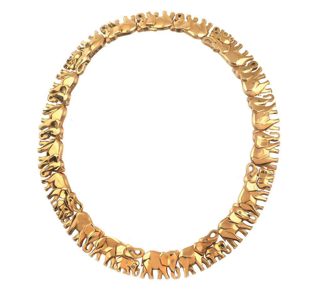 COLLANA, CARTIER, IN ORO GIALLO E SMERALDI realizzata ad una fila di elefanti...