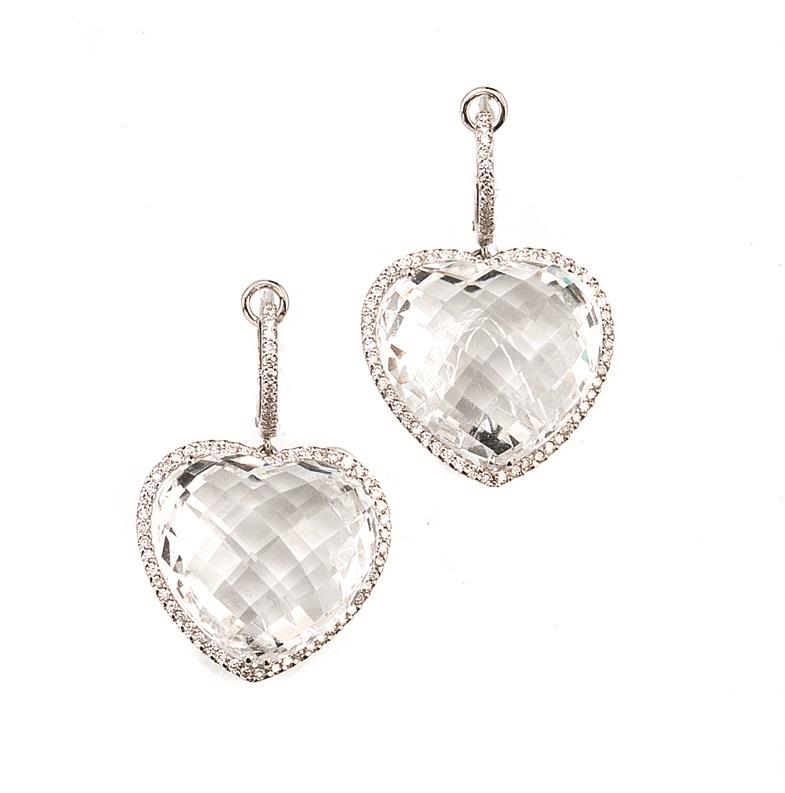 ciascuno realizzato con una monachella decorata in brillanti a cui è sospeso un cuore in topazio incolore entro cornice di diamanti, 13 g