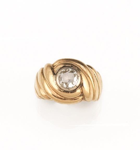 ANELLO IN ORO GIALLO E DIAMANTElavorato a torchon con diamante taglio vecchio...