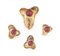 PARURE, ANNI '40, IN ORO GIALLO, RUBINI E DIAMANTI, COMPOSTA DI PAIO DI ORECCHINI, ANELLO E SPILLA