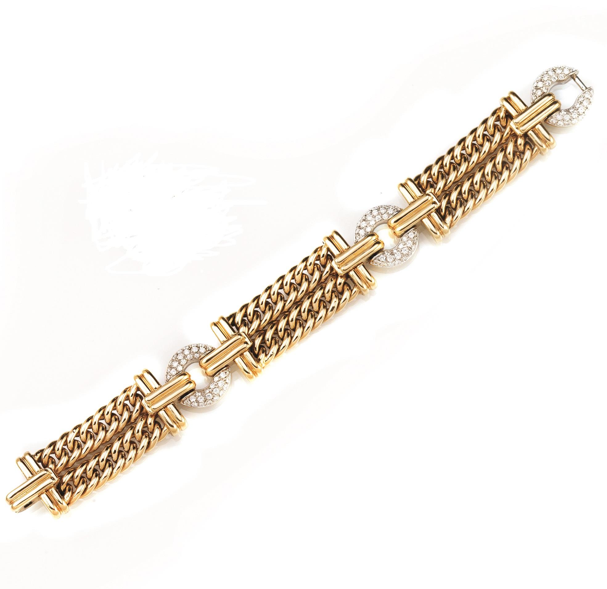 BRACCIALE IN ORO GIALLO, ORO BIANCO E DIAMANTI