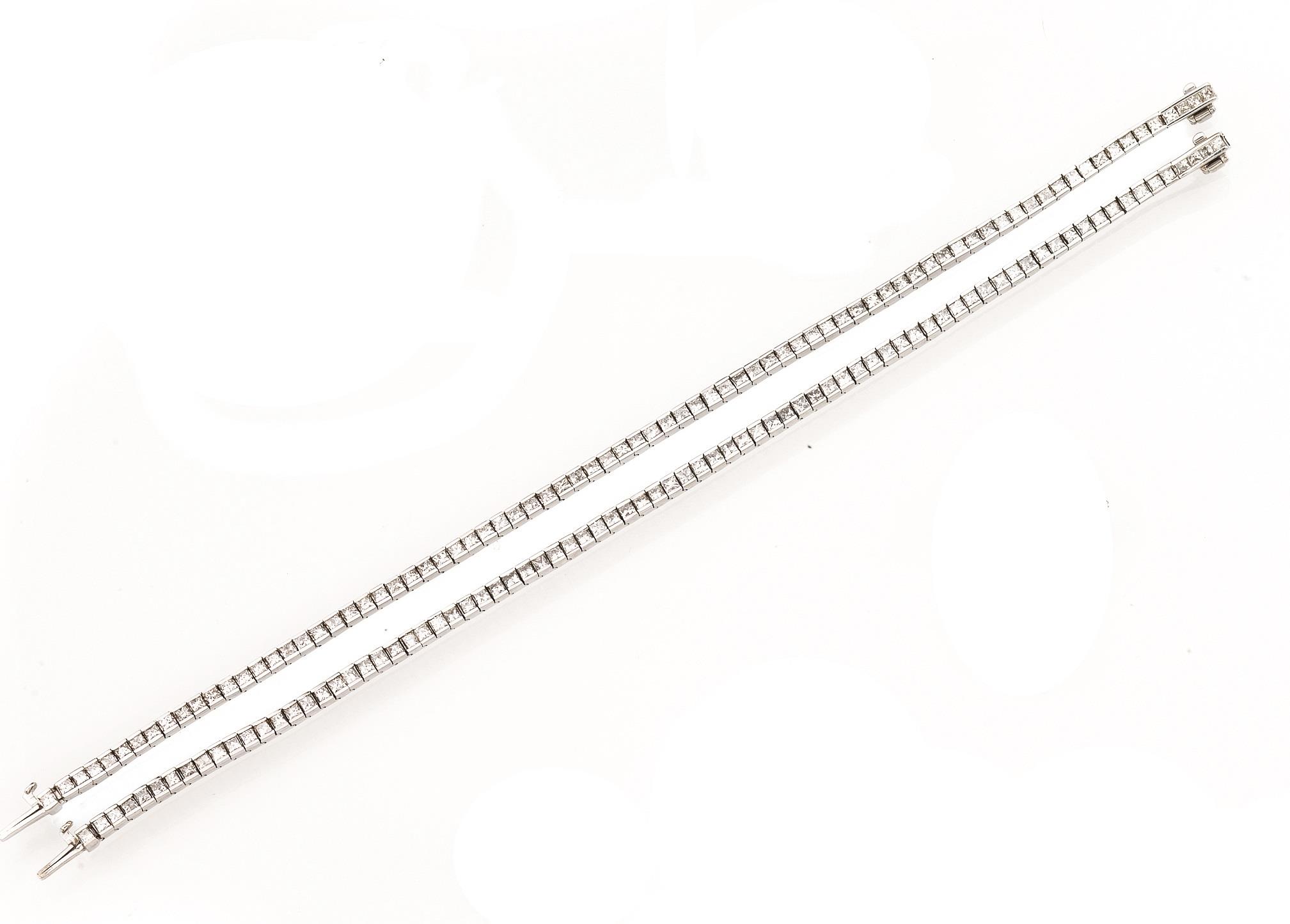 ciascuno ad una linea di ottanta brillanti carre montati entro castoni quadrati per 2.40 ct circa, punzoni 18 k e 14 k, 26 g