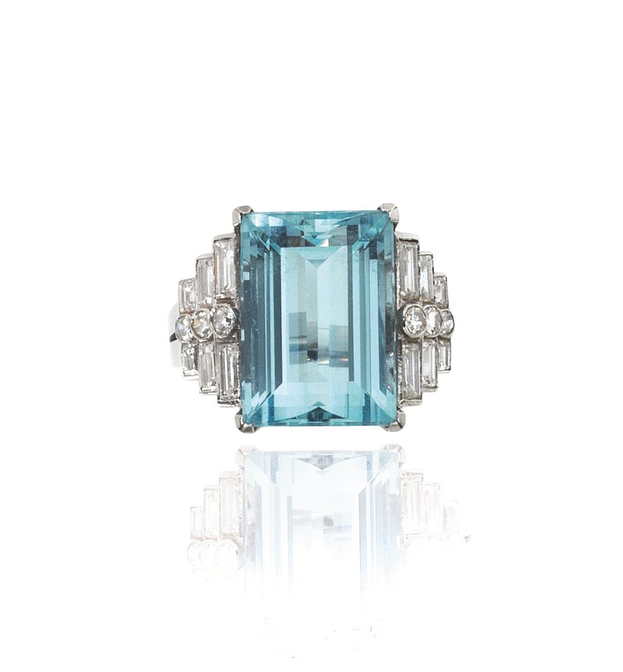 ANELLO IN PLATINO, ACQUAMARINA E DIAMANTI