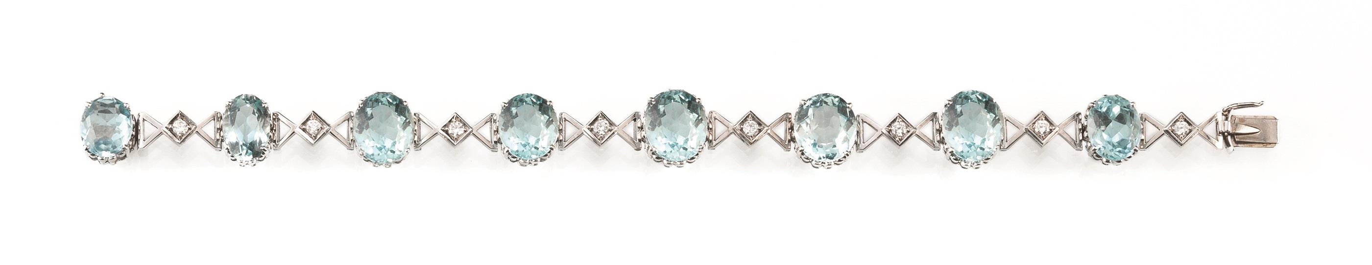 realizzato ad una fila di otto acquamarine ovali unite da maglie romboidali decorate in brillanti, 26 g