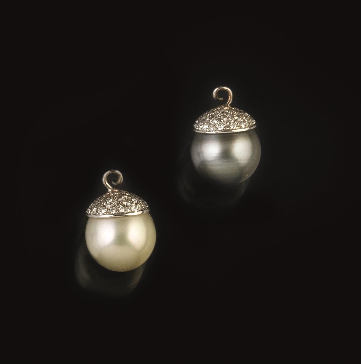 rispettivamente con perla Tahiti diam. 17.5 con coppiglia decorata in pave di brillanti e con perla autraliana diam. 17.5 con coppiglia in pave di brillanti, 20 g