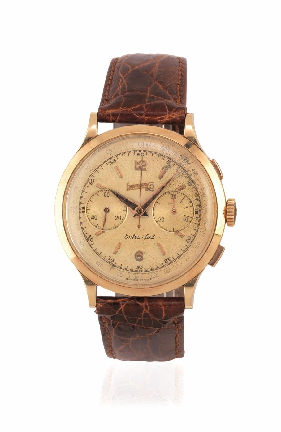 OROLOGIO DA POLSO CON CRONOGRAFO, EBERHARD & CO. EXTRA-FORT, N. 14007 699, ANNI ’50, IN ORO GIALLO, CON SCATOLA