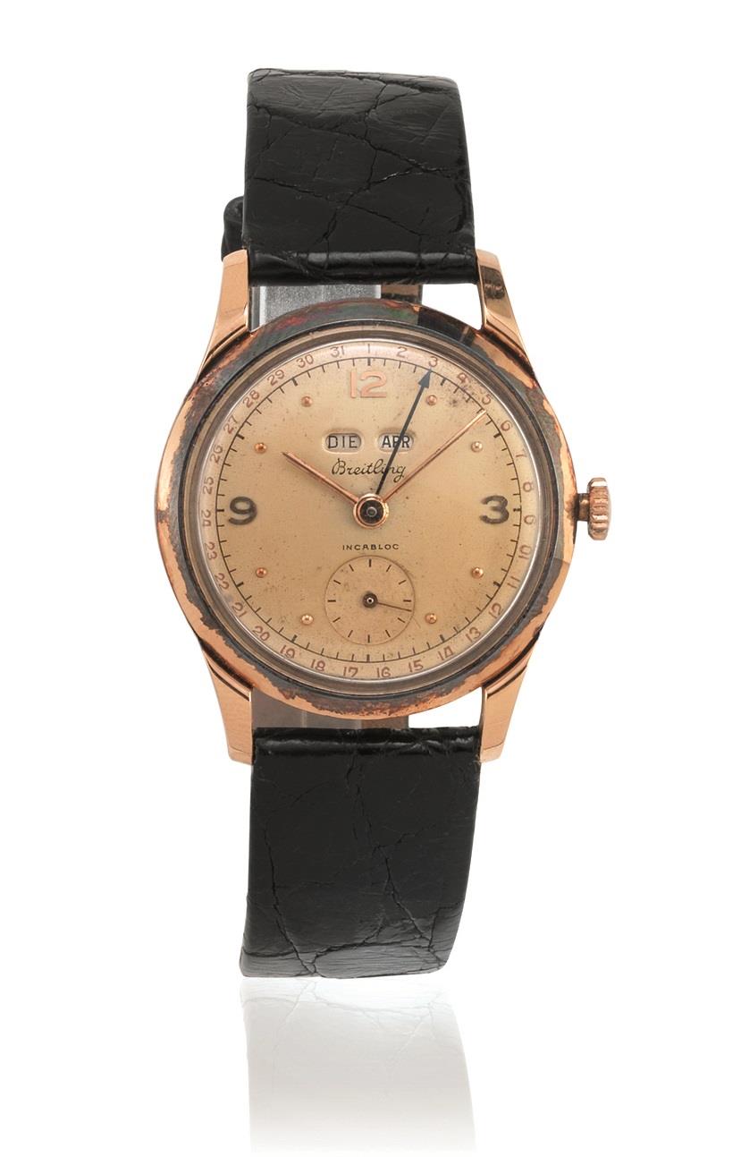 OROLOGIO DA POLSO CON CALENDARIO COMPLETO BREITLING, REF. 141-20, SERIALE N. 466895, ANNI ’50, IN ORO ROSA