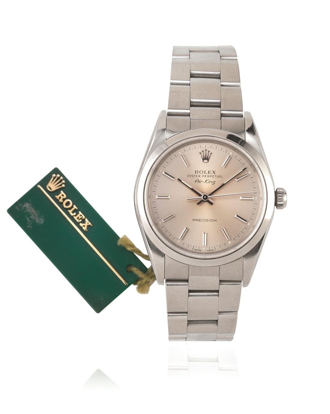 OROLOGIO DA POLSO ROLEX OYSTER PERPETUAL AIR-KING, REF. 14000, CASSA N. E990038, 1990-‘91 CIRCA, IN ACCIAIO, CON SCATOLA E GARANZIA