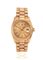 Cassa oyster in tre corpi in oro lucido e satinato, fondello e corona a vite, lunetta zigrinata, vetro zaffiro. Quadrante champagne con indici applicati e lancette a bastone con inserto in materiale luminescente, secondi al centro, datario ad ore 3, apertura per i giorni in italiano ad ore 12. Movimento a carica automatica calibro 3055. Bracciale a maglie in oro giallo, chiusura deployante, cassa, quadrante e movimento firmati