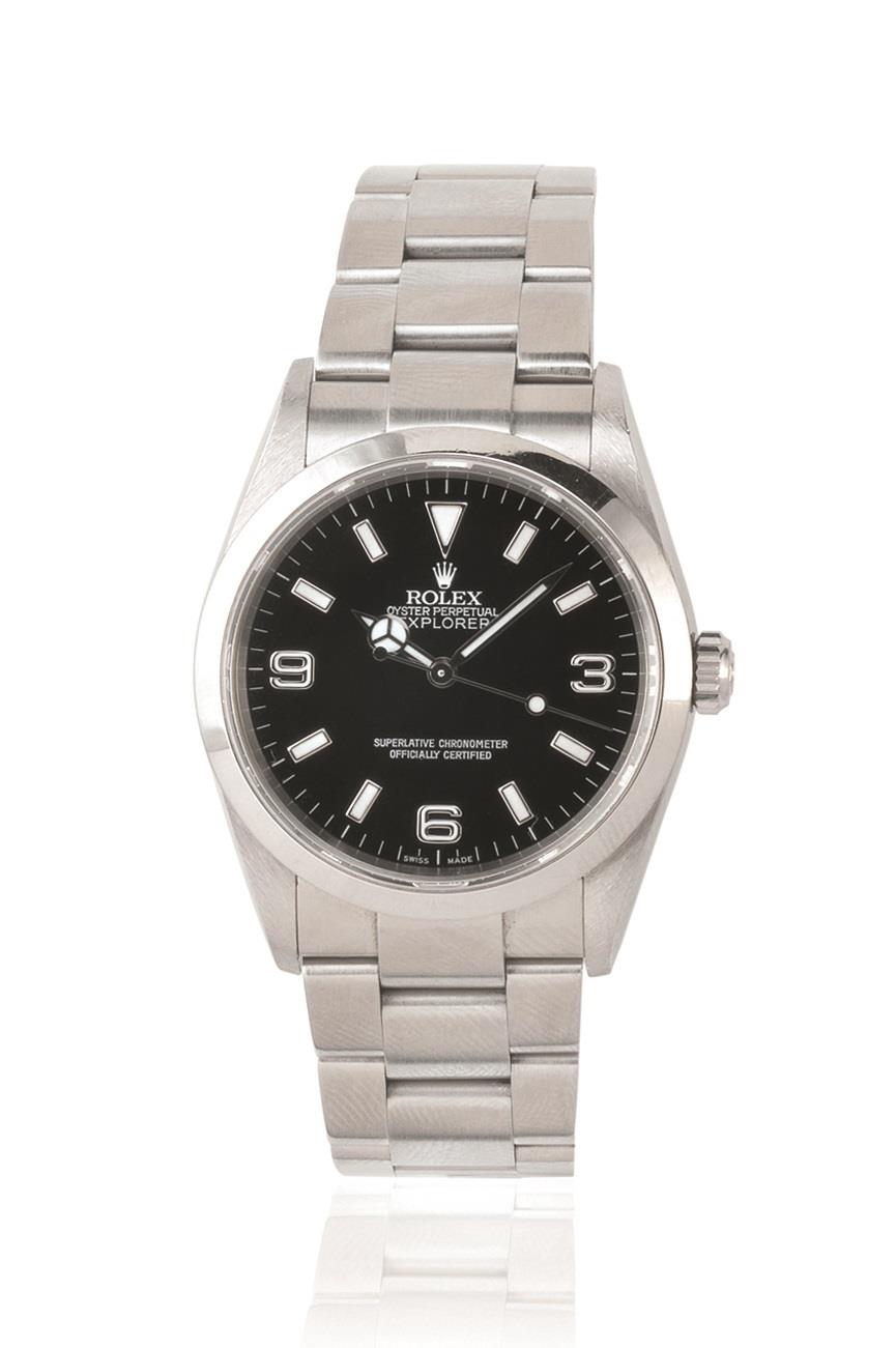 OROLOGIO DA POLSO ROLEX OYSTER PERPETUAL EXPLORER REF. 114270, CASSA N. Y306886, 2002 CIRCA, IN ACCIAIO, CON SCATOLA E GARANZIA DATATA 2002