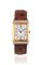 Cassa rettangolare reversibile in cinque corpi in acciaio lucido e satinato e oro, fondello inciso con monogramma, lunetta rigata. Quadrante argentè bi-tonale con numeri arabi, lancette a spada blu. Movimento a carica automatica. Cinturino in pelle con fibbia ad ardiglione in acciaio non pertinente, cassa, quadrante e movimento firmati