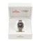 Cassa in tre corpi in acciaio lucido e satinato, fondello a vite con logo Speedmaster, simbolo delle Olimpiade e scritta Broad Arrow, anse a lira, lunetta con scala tachimetrica a 300 unità per ora, pulsanti cronografici tondi. Quadrante nero con numeri arabi bianchi, tre quadranti ausiliari a ore 3,6, e 9 con registri dei 30 minuti e delle 12 ore con lancette rosse, secondi continui; lancette Broad Arrow con inserto luminescente, secondi cronografici rossi al centro. Movimento a carica automatica calibro 33030. Bracciale a maglie in acciaio satinato, chiusura deployante, cassa, quadrante e movimento firmati