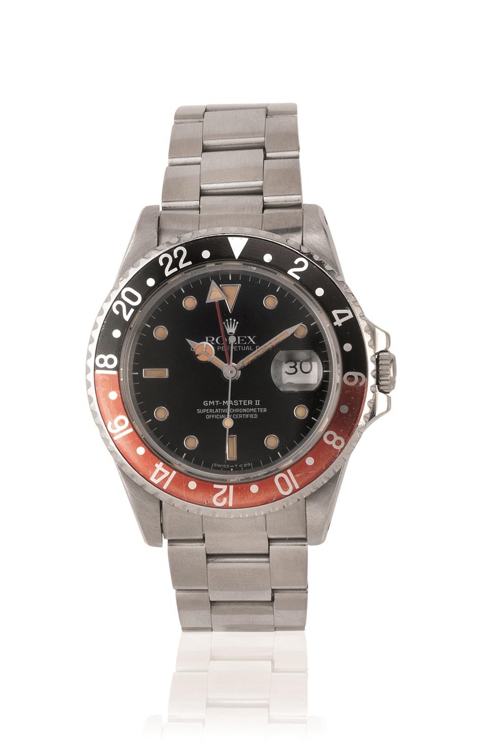 OROLOGIO DA POLSO ROLEX OYSTER PERPETUAL GMT-MASTER, REF. 16710, CASSA N. N207-199, 1991-‘92 CIRCA, IN ACCIAIO, CON SCATOLA