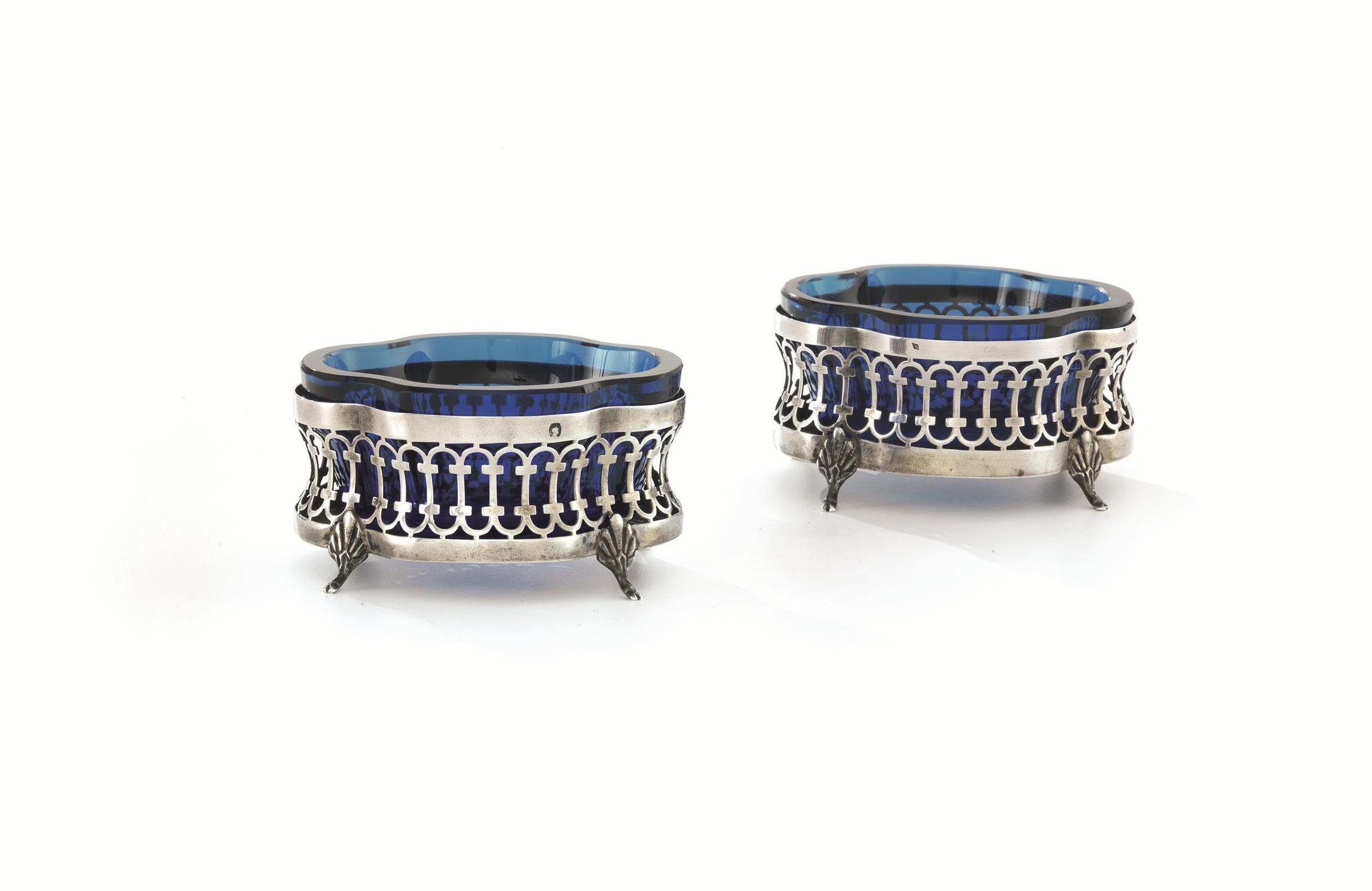 COPPIA DI SALIERE, FRANCIA, METÀ SECOLO XIXin argento, di forma ovale...