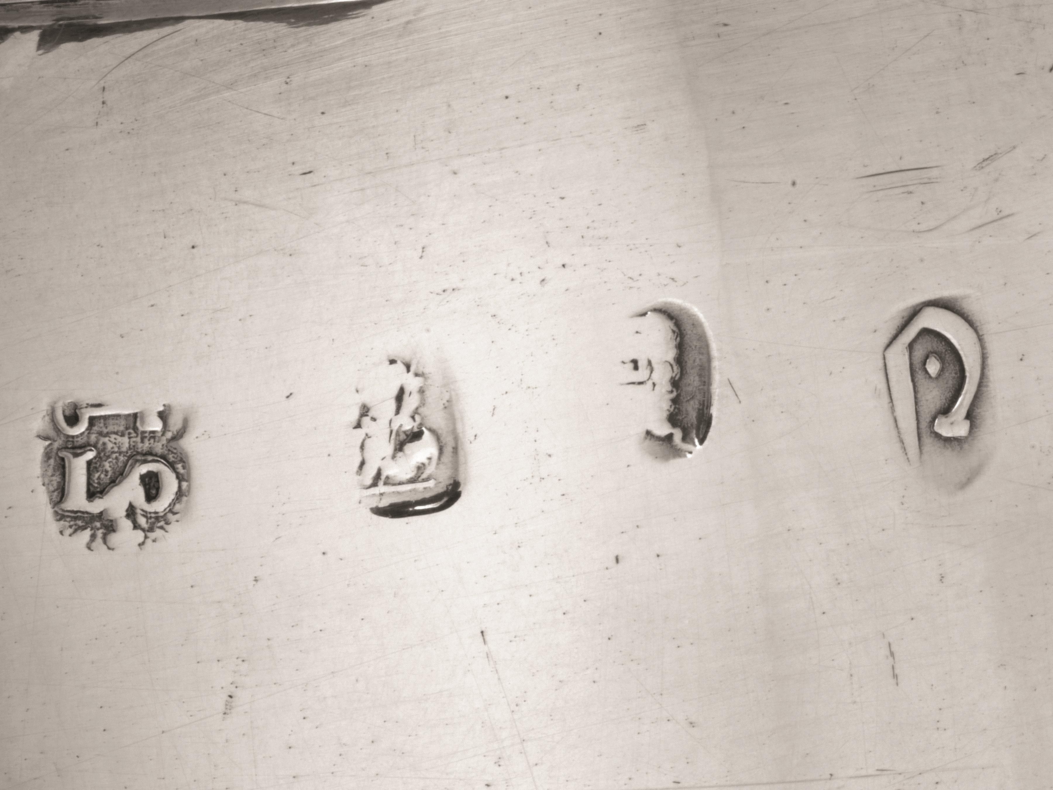 corpo cilindrico liscio su base lievemente gradinata, coperchio a cupola schiacciata, presa a voluta terminante con elemento esagonale decorato da incisione EK 1709. Sul fondo l’iscrizione The gift of Eliz. Millenor to Eliz. King 1690, alt. cm 21, g 1055