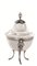 in argento poggiante su tre piedini terminanti a zoccolo equino stilizzato, presa del coperchio a pigna, alt. cm 17, g 280