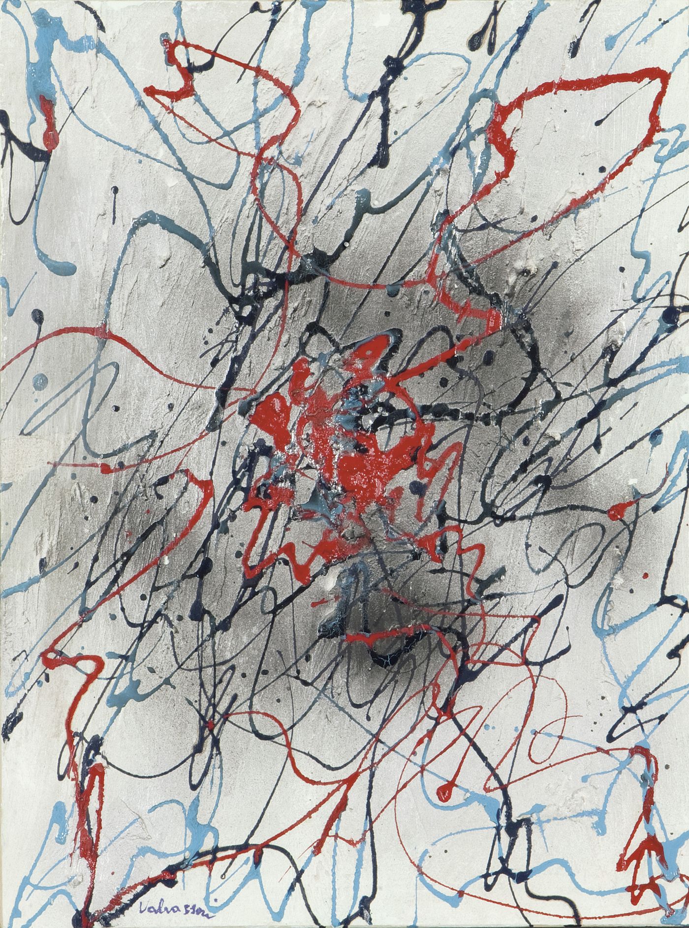 VALVASSORI SERGIO (Torino 1920 – 2006) - "Senza titolo" anni '80, 40x30 smalto e acrilico su cartoncino. Opera firmata in basso a sinistra. Autentica di Cristina Valvassori su fotografia, rilasciata in data 2/04/2011