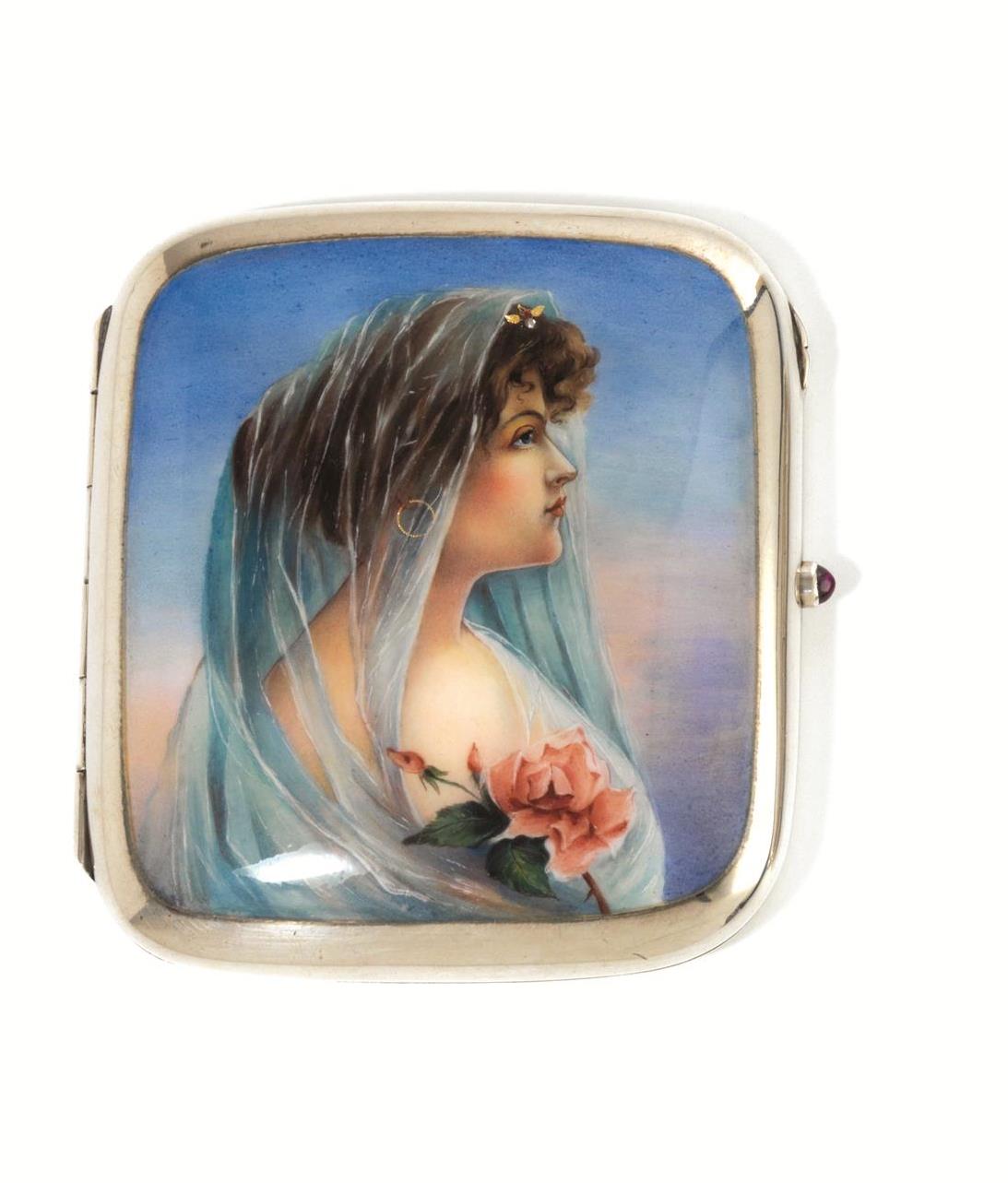 Lotto 112 | PORTASIGARETTE, INIZI SECOLO XX  in argento, coperchio decorato a smalto...