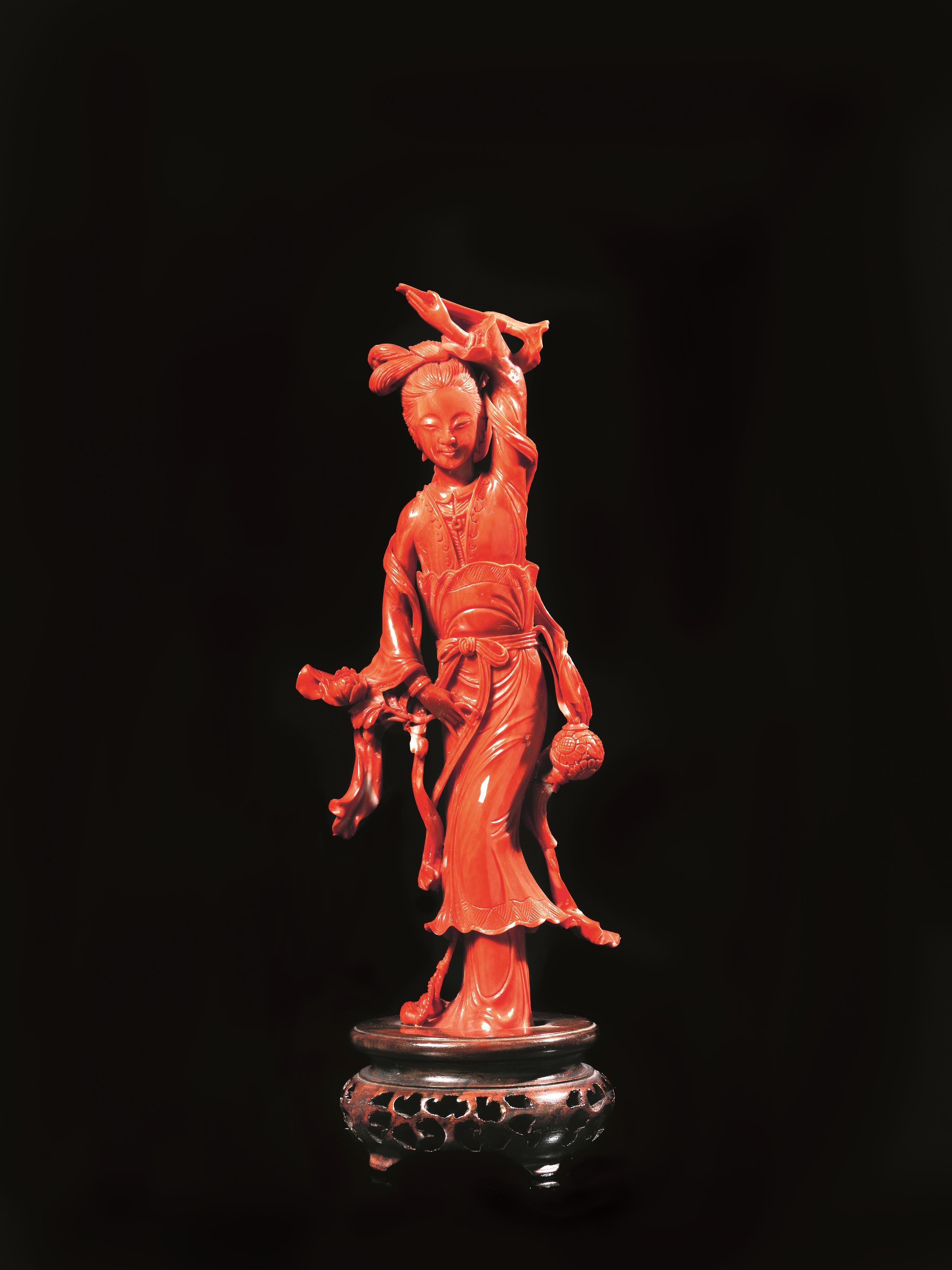FIGURA FEMMINILE, CINA SEC. XIX in corallo rosso, finemente intagliate...
